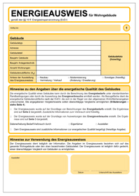 Zum Muster des Energieausweises bitte das Bild anklicken.